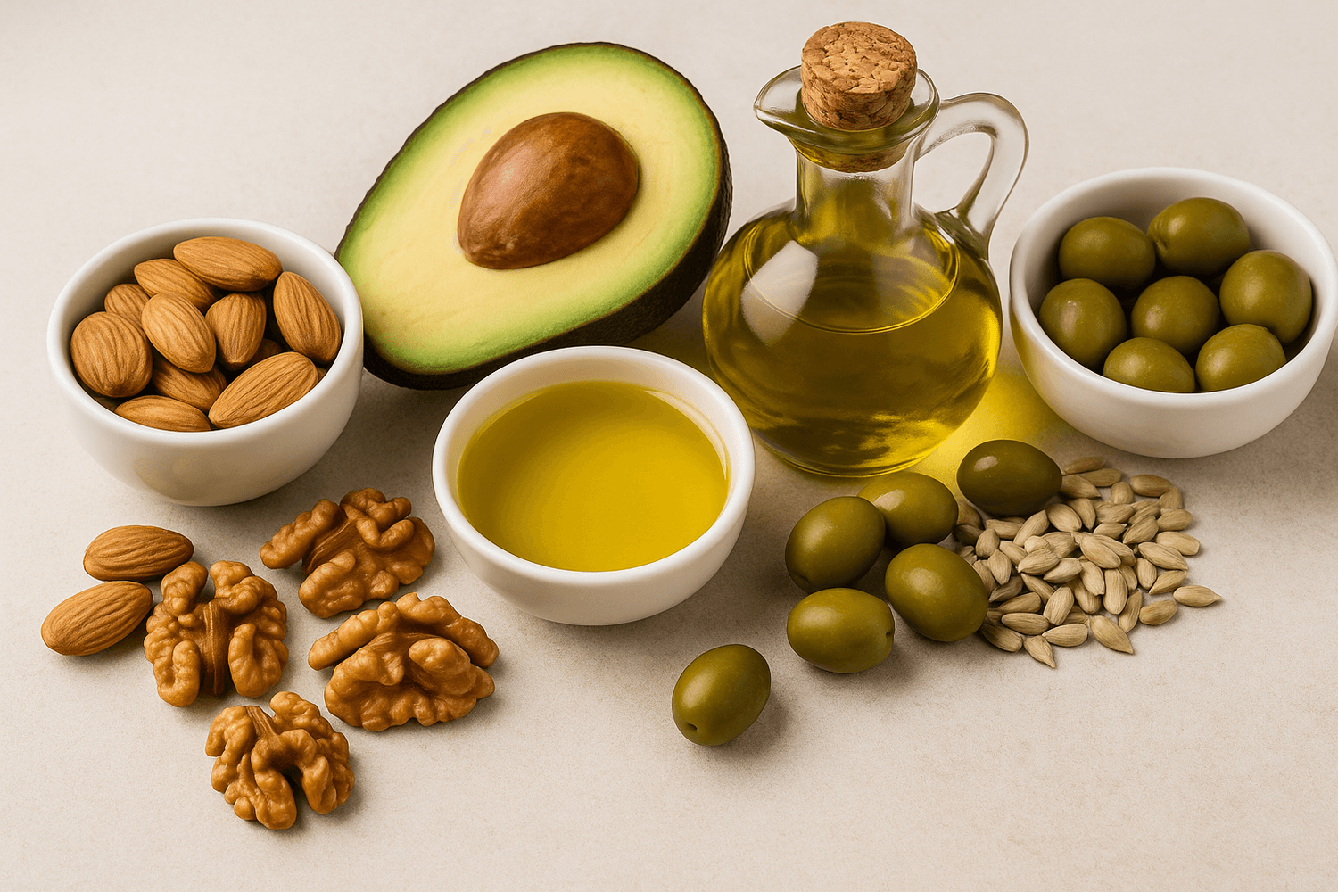 Las grasas insaturadas (aceite de oliva, aguacate, frutos secos, pescado azul) favorecen la salud cardiovascular y la regulación hormonal.